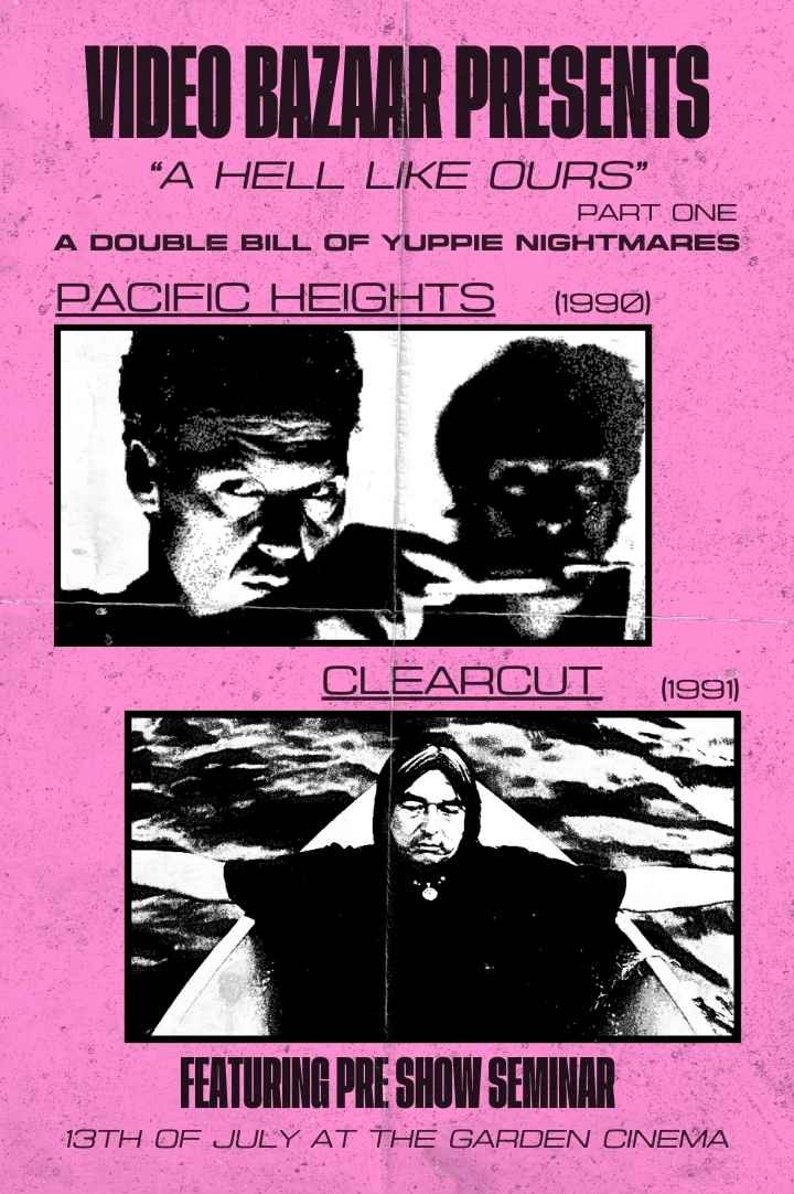 Video Bazaar is proud to present part one of A Hell Like Ours, a landmark double bill at The Garden Cinema featuring two nightmarish thrillers that explore socioeconomic anxieties and moral dilemmas in late 20th Century Cinema, John Schlesinger's Pacific Heights and Ryszard Bugajski's Clearcut.